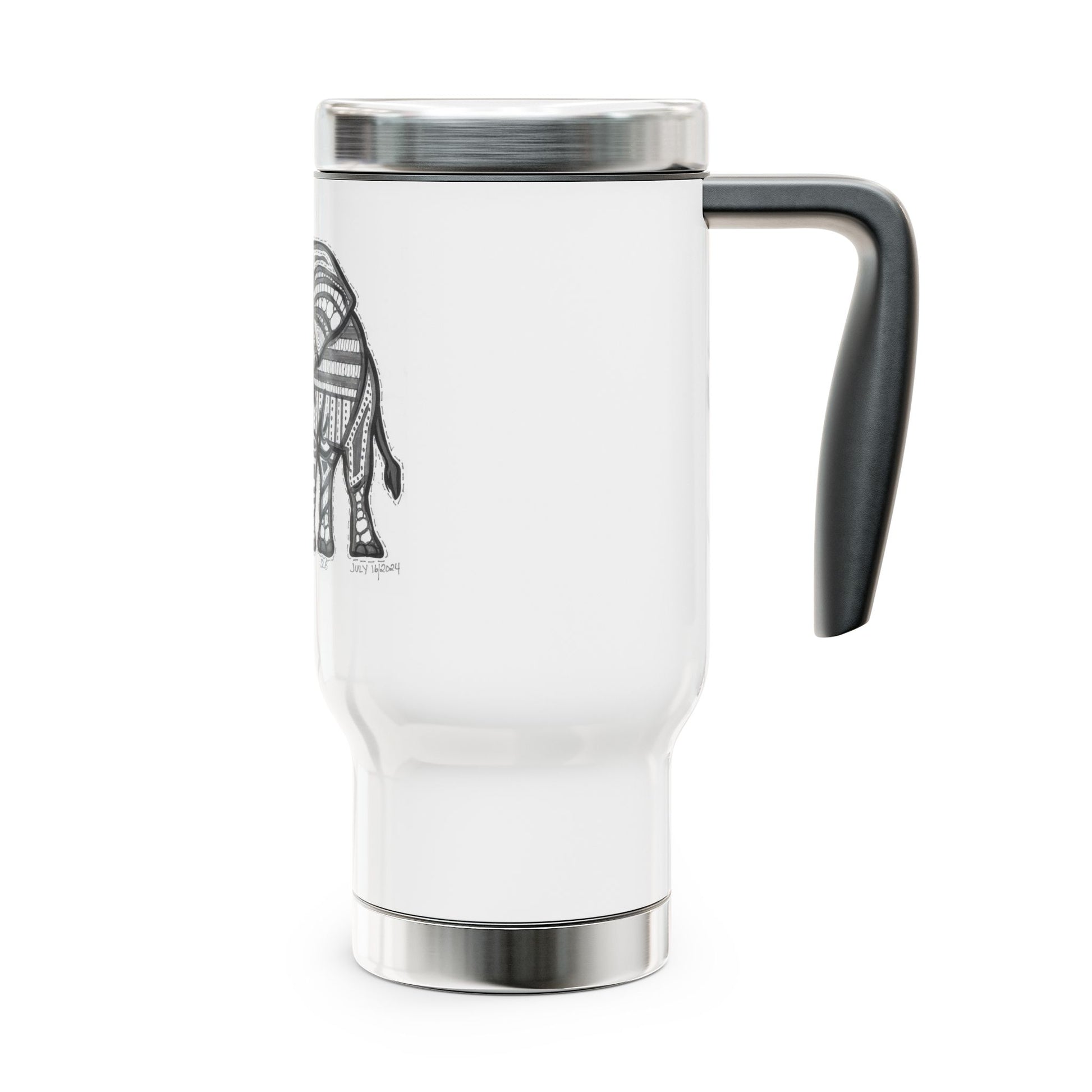 Zentangle Elephant - Stainless Steel Travel Mug with Handle, 14oz