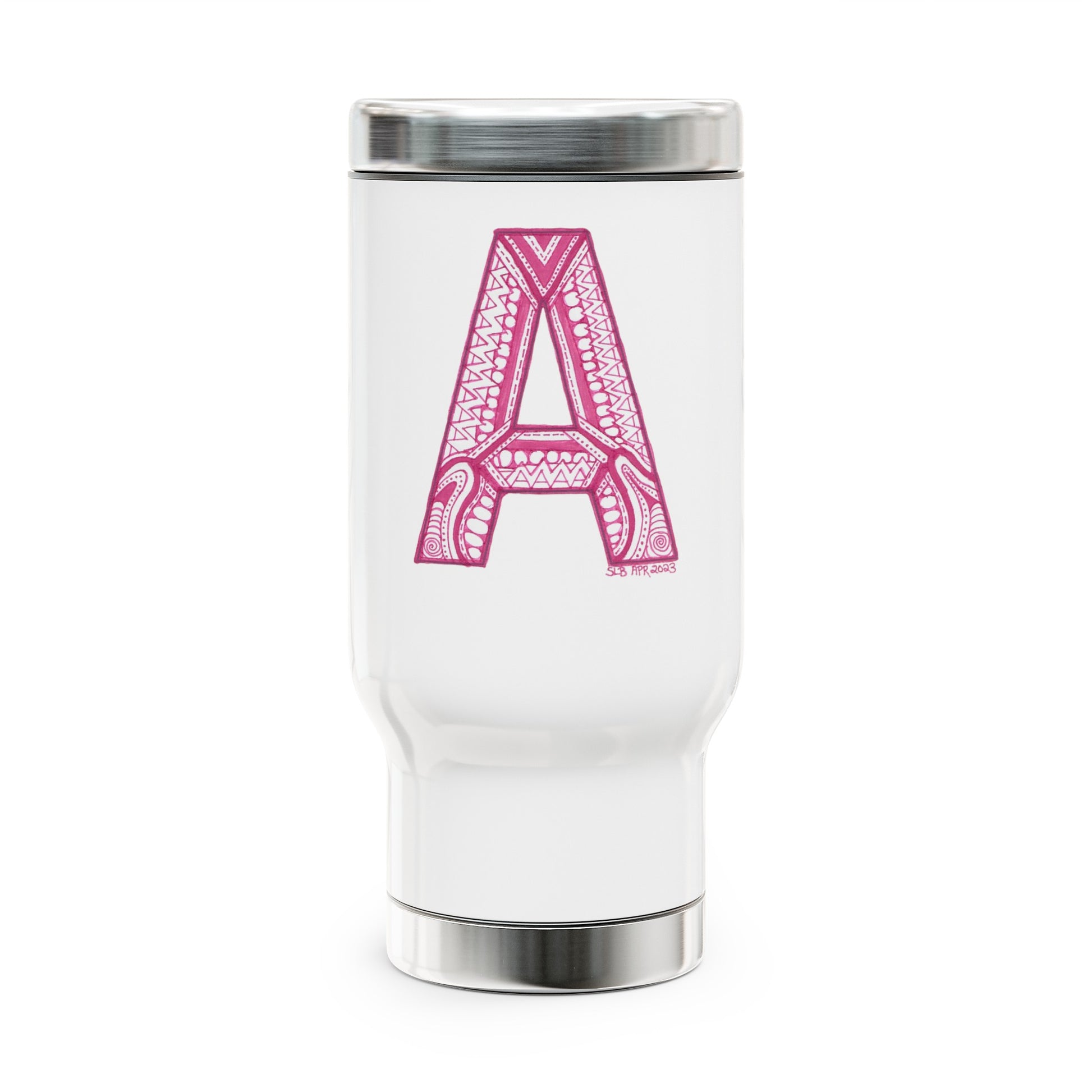 Zentangle A - Stainless Steel Travel Mug with Handle, 14oz