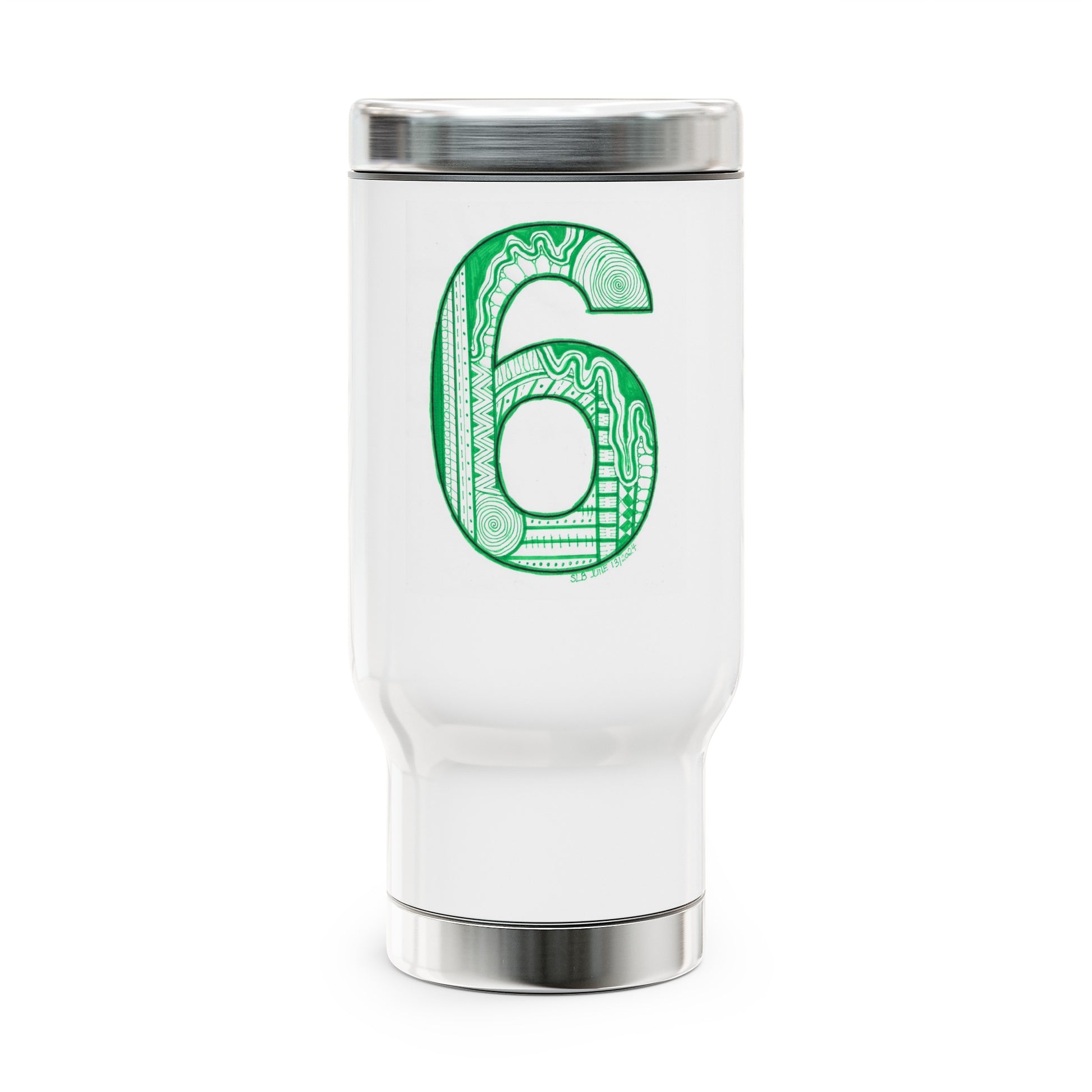 Zentangle number 6 - Stainless Steel Travel Mug with Handle, 14oz