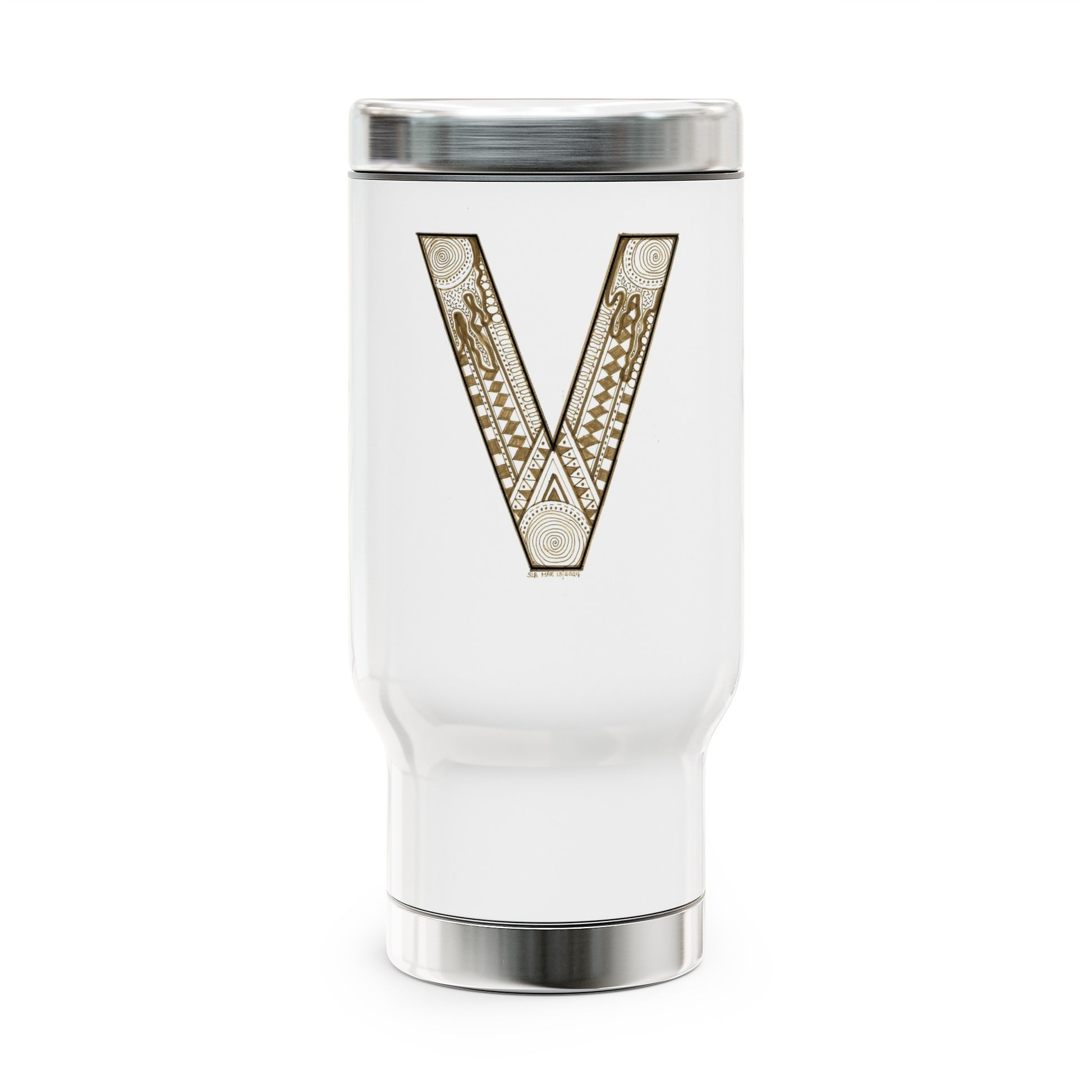 Zentangle V - Stainless Steel Travel Mug with Handle, 14oz