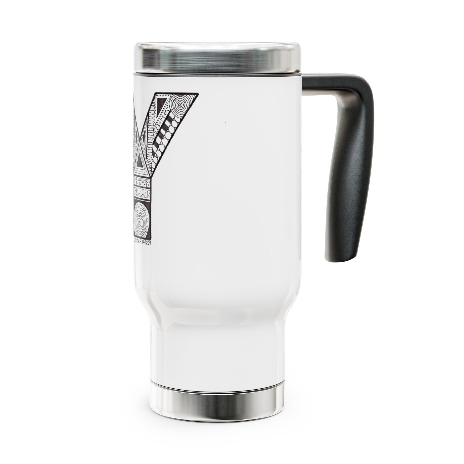 Zentangle Y - Stainless Steel Travel Mug with Handle, 14oz